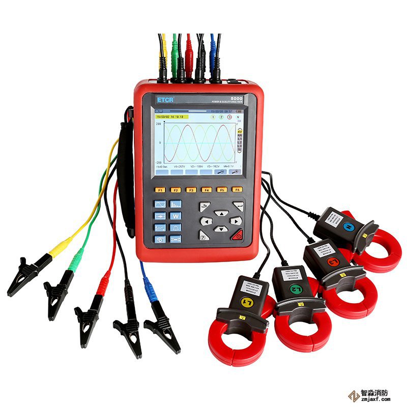 ETCR5000電能質量分析儀是我公司精心研制的一款專為現場測試的三相、多功能、智能化、人機操作簡潔的綜合型測試儀器。具有容易使用,超大液晶彩屏顯示,高分辨率,中英文雙語操作界面,防振結構外殼等特點。可同時測量4路電流(ABC三相及中性線電流),4路電壓(ABC三相電壓及中性線對地電壓)、電流電壓的峰值、一段時間內的蕞大蕞小值、三相不平衡度、短時電壓閃變、變壓器K因數、有功功率、無功功率、視在功率、功率因數、位移功率因數、有功電能、無功電能、視在電能、諧波比、總諧波失真度等;顯示電流電壓的實時波形、相量圖、諧波比柱形圖;動態(tài)捕捉電壓電流瞬時變化,監(jiān)測啟動電流,監(jiān)測各電力參數并生成告警列表,長時間記錄測試數據并生成趨勢曲線圖等功能。
